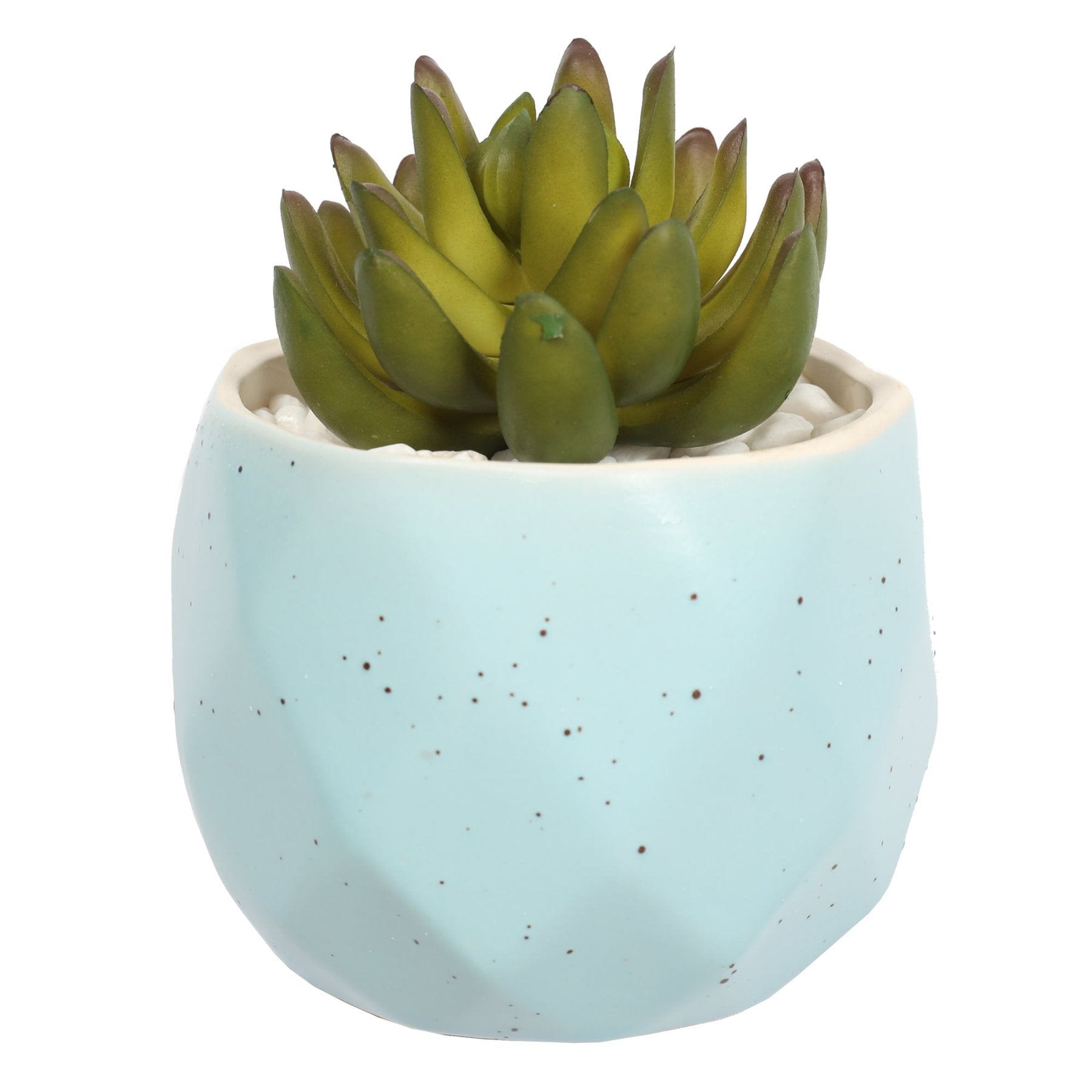 Embellece tu espacio con la Suculenta en Macetero Celeste. Con un tamaño compacto de 14 cm, esta suculenta artificial es perfecta para cualquier rincón de tu hogar u oficina. El macetero celeste aporta un toque fresco y moderno, complementando cualquier estilo decorativo. Sin necesidad de cuidados especiales, esta suculenta mantendrá su aspecto vibrante y natural durante todo el año. Ideal para quienes desean un toque de naturaleza sin el mantenimiento de una planta viva.